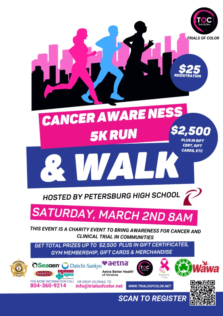 - This is a joint event for cancer awareness between Trials of Color and Petersburg High School.